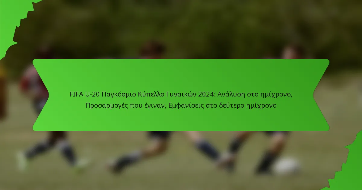 Οι επιδόσεις των παικτών στο Παγκόσμιο Κύπελλο Γυναικών FIFA U-20 2024 μπορεί να διαφέρουν σημαντικά μεταξύ του πρώτου και του δεύτερου ημιχρόνου. Η ανάλυση αυτών των διαφορών βοηθά στην κατανόηση των τακτικών προσαρμογών και της επίδρασης στις ευκαιρίες σκοραρίσματος.